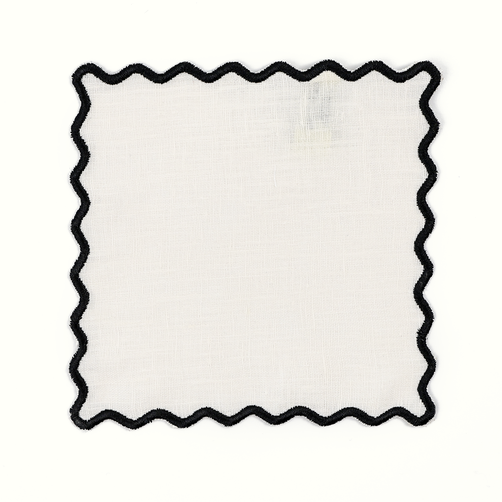 Scalloped Linen Square Cocktail Napkins - Set of 4