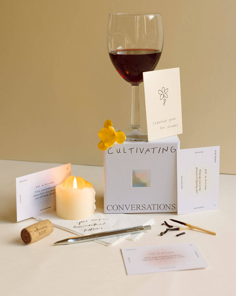 04. As the conversation unfolds, offer your flower card to someone who shares something meaningful, sparks curiosity, or makes you feel seen. The game ends whenever the group decides, as long as all flower cards have been given away.
