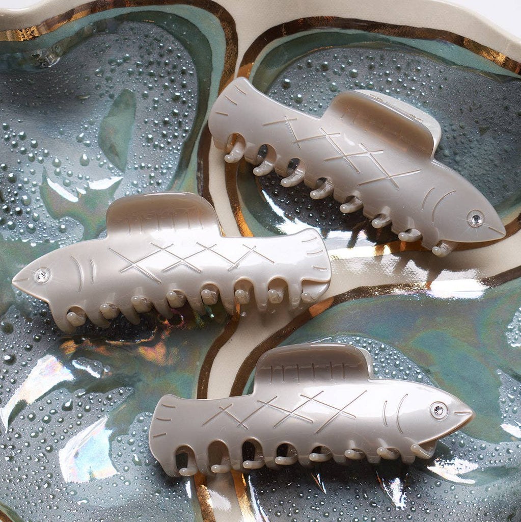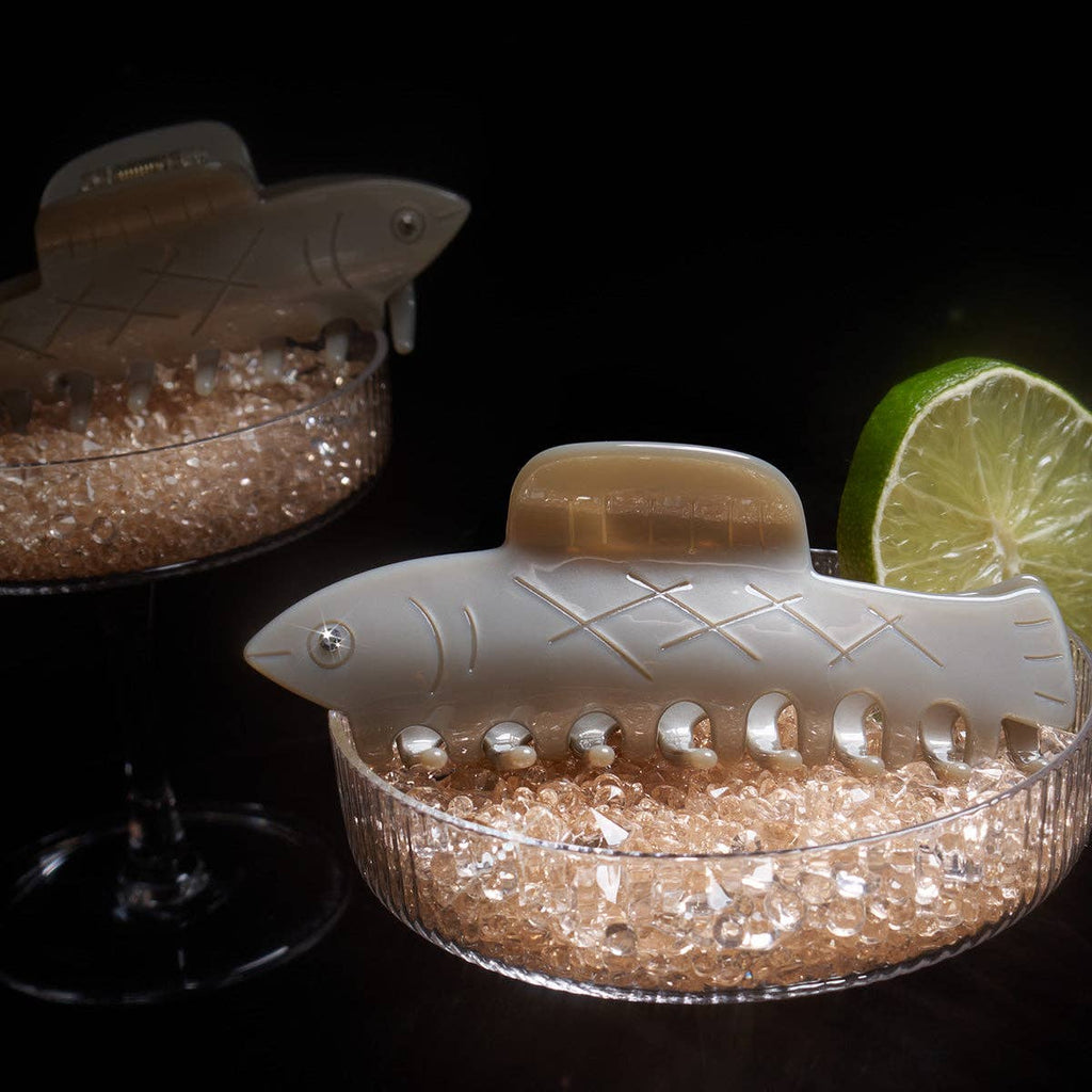 Herring Claw Whether you're a fan of pickled herring or just enamored by the sea, this claw is sure to quickly become a favorite in your collection! Featuring a claw that gently and securely wraps around and holds lots of hair, this sweet silvery fish brings just the right amount of sparkle.