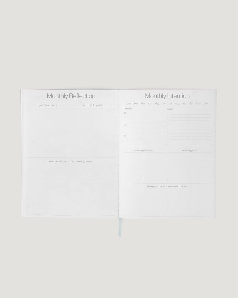 Monthly Planning Spread: Simple undated layout with a daily 1% reminder to take a small step towards growth