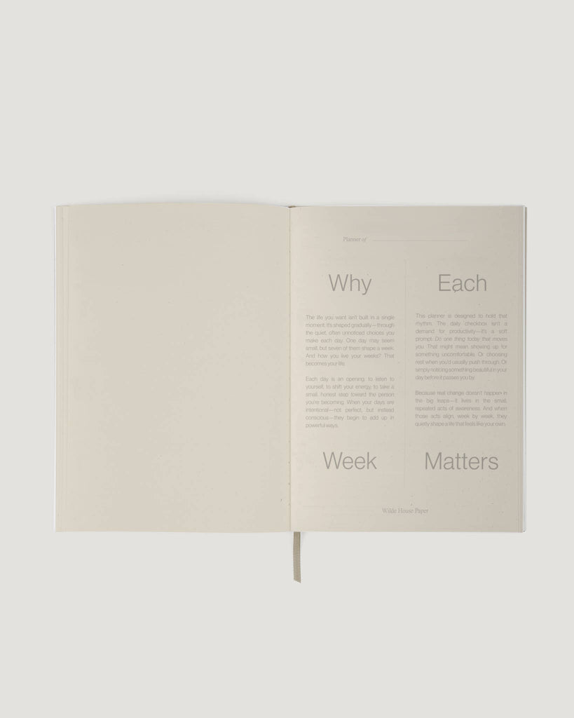 The Week Planner is designed to hold the rhythm of small, honest steps that shape real, lasting change. With seven daily chances to shift your energy, listen inward, and move just 1% closer to the life you want, this planner helps you stay grounded in what matters without the pressure to do it all. One quiet choice at a time, your week begins to reflect the person you're becoming.